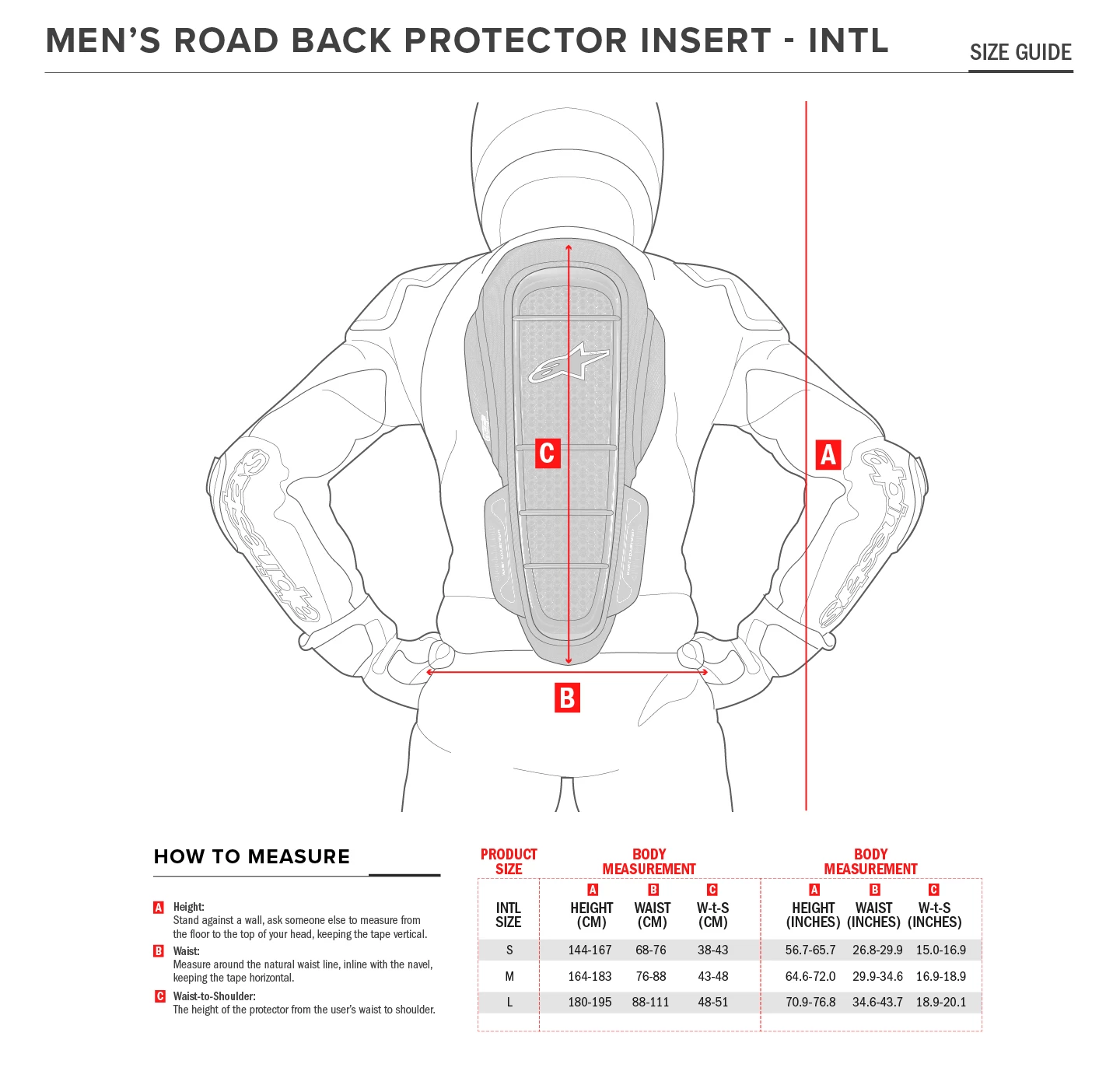 - The super lightweight back protector insert is developed in three waist-to-shoulder dimensions in order to cover all body sizes.