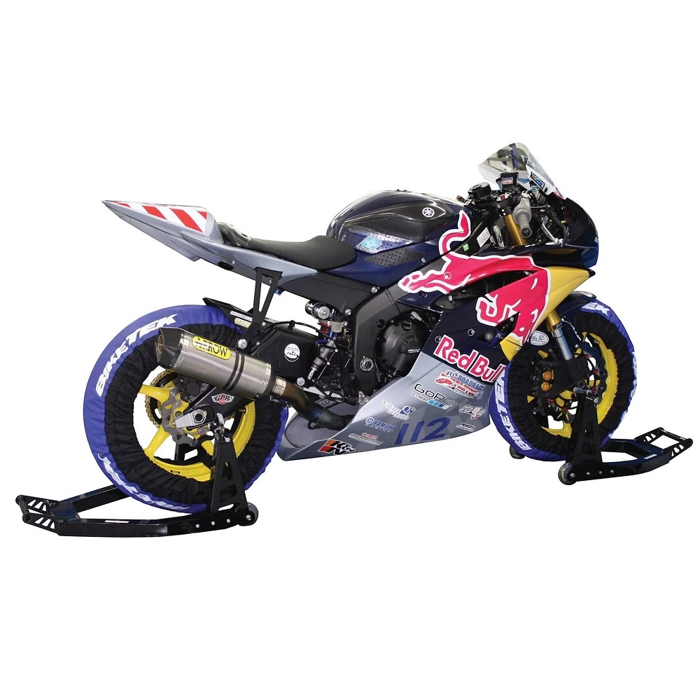 The BikeTek Aluminium Box black rear motorcycle paddock stand is ideal for riders looking to store their bike and hit the paddock on track days. With a heavy duty aluminium frame, the rear motorbike stand is extremely lightweight, durable and rigid, which will hold up to even the toughest of tests. Comes with an over sized box section base, and effortless self assembly. A matching front paddock stand is also available.