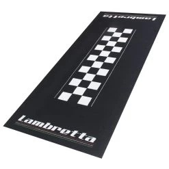 The BikeTek Series 4 Lambretta motorcycle garage mat can be used for both decoration and display purposes in home garages. Mats can also function as protective environmental work-mats for both indoor and outdoor use, preventing fuel and lubricant spills when carrying out maintenance and repairs. Each garage mat is constructed with a nylon-fibre top section which is oil and water resistant. The backing is non-slip and prevents lubricants seeping through. This workshop mat fully complies with FIM regulations for environmental mats fluid absorption, suitable for use at tracks and circuits.