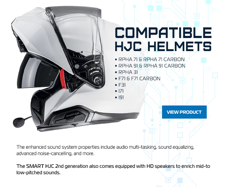 The enhanced sound system properties include audio multi-tasking, sound equalizing, advanced noise-cancelling, and more. The SMART HJC 2nd generation also comes equipped with HD speakers to enrich mid-to low-pitched sounds.