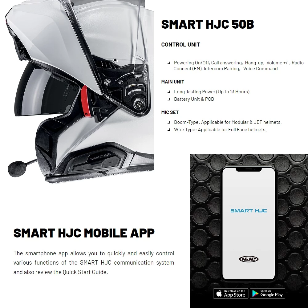 - Quickly and easily control various functions of the SMART HJC communication system and also review the Quick Start Guide.