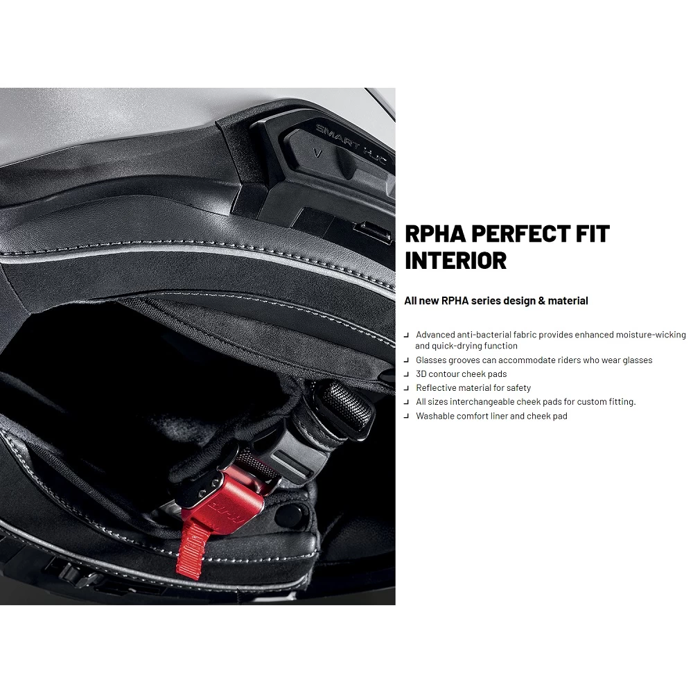 The SMART HJC 2nd generation premium Bluetooth communication system models implement an all-in-one design can be fully integrated into the helmet. This allows you to feel the optimal weight balance and aerodynamic performance while riding. The SMART HJC 50B and 21B can be installed on the RPHA 71, RPHA 91, RPHA 31, or i71. Co-developed with SENA and tailored specially for HJC helmets. All SMART HJC devices are sold separately.