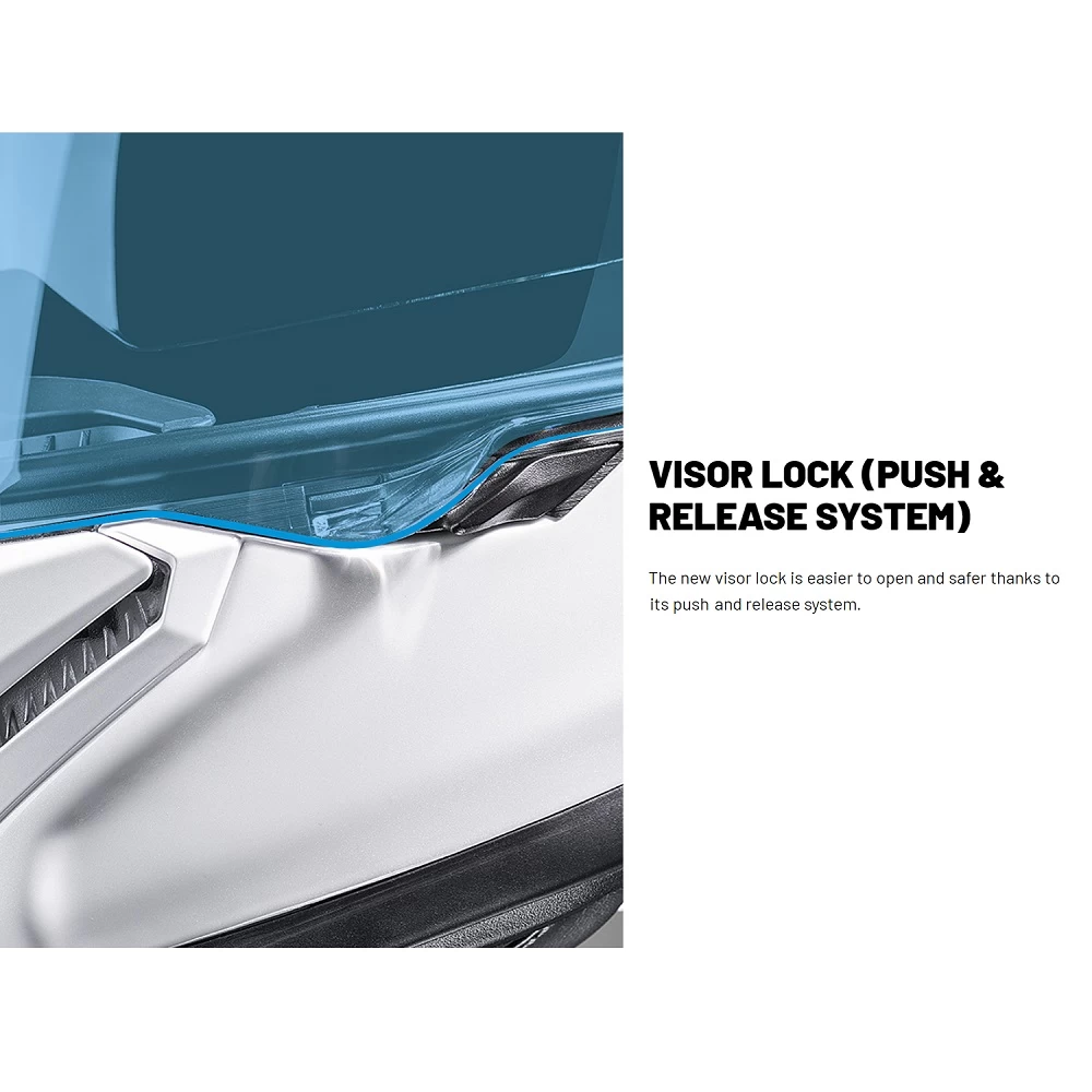 The new visor lock is easier to open and safer thanks to its push and release system.
