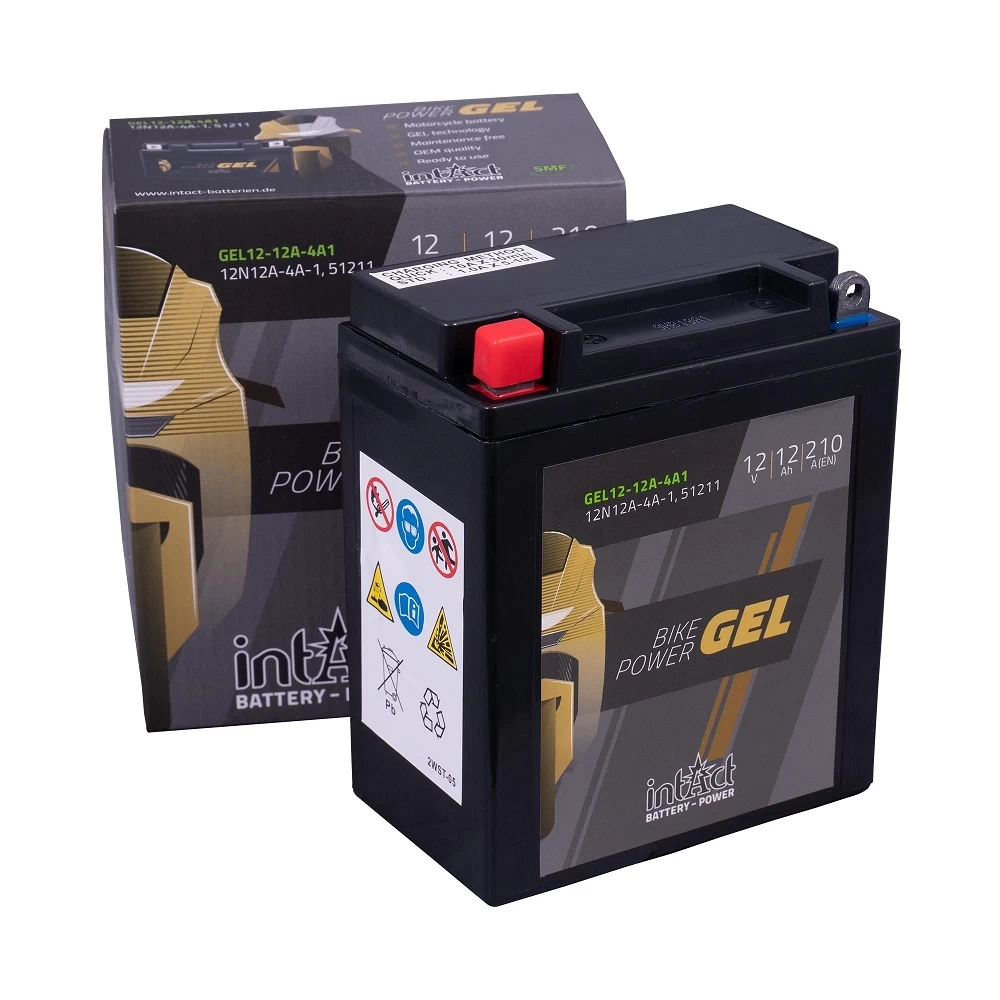 The Intact 51211 Gel Motorcycle Battery is a fully sealed GEL battery, which is factory activated, supplied pre-charged and require no acid-filling to get started. A premium ready-to-use high performance battery, the GEL motorbike battery offers greater charge-cycle performance over AGM and SLA batteries of same case size. These are particularly suited for modern motorcycles and scooters with ABS and additional electrical devices. Offering 30% more starting performance than conventional flooded batteries, with great starting reliability and longevity all year round. GEL are completely maintenance-free and offer incredible vibration resistance.