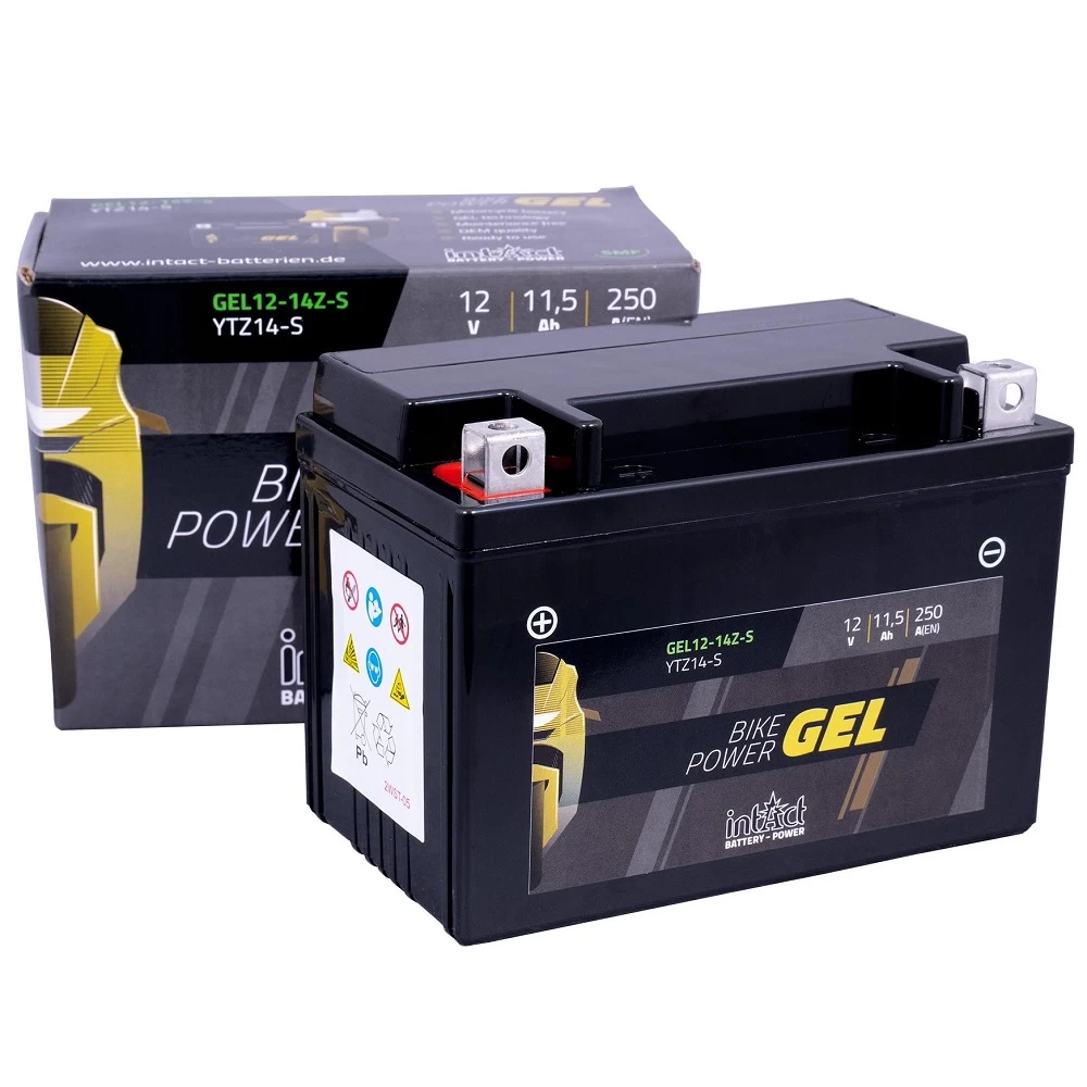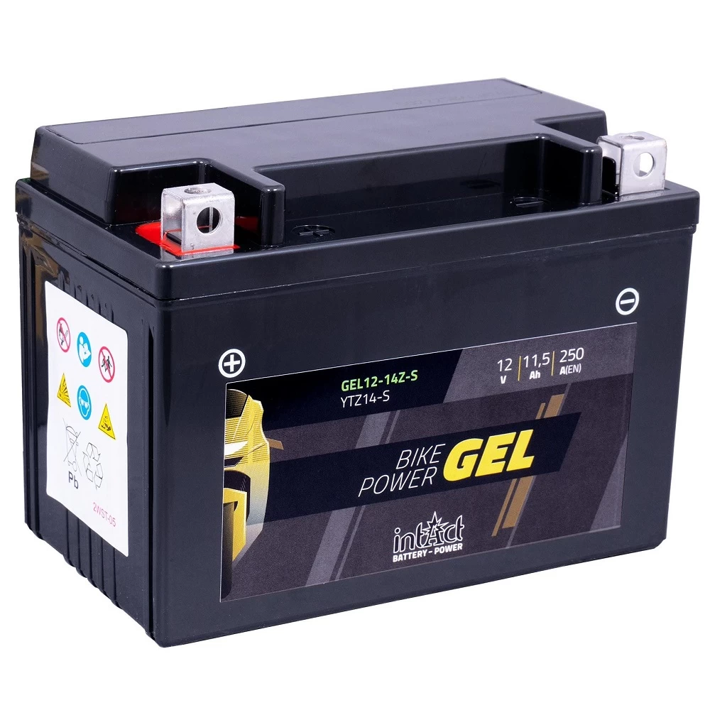 The Intact ITZ14-S Gel Motorcycle Battery is a fully sealed GEL battery, which is factory activated, supplied pre-charged and require no acid-filling to get started. A premium ready-to-use high performance battery, the GEL motorbike battery offers greater charge-cycle performance over AGM and SLA batteries of same case size. These are particularly suited for modern motorcycles and scooters with ABS and additional electrical devices. Offering 30% more starting performance than conventional flooded batteries, with great starting reliability and longevity all year round. GEL are completely maintenance-free and offer incredible vibration resistance.
