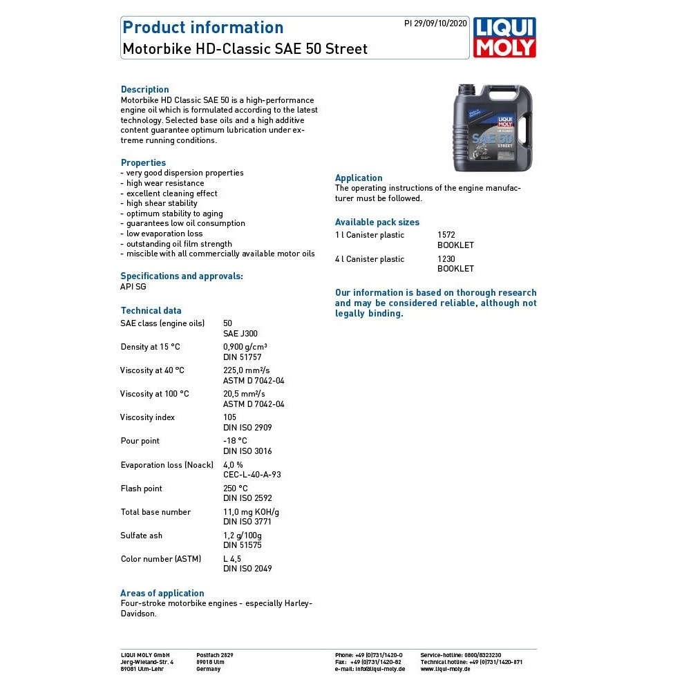 Liqui Moly 4 Stroke HD-Classic Street SAE 50 Mineral Oil