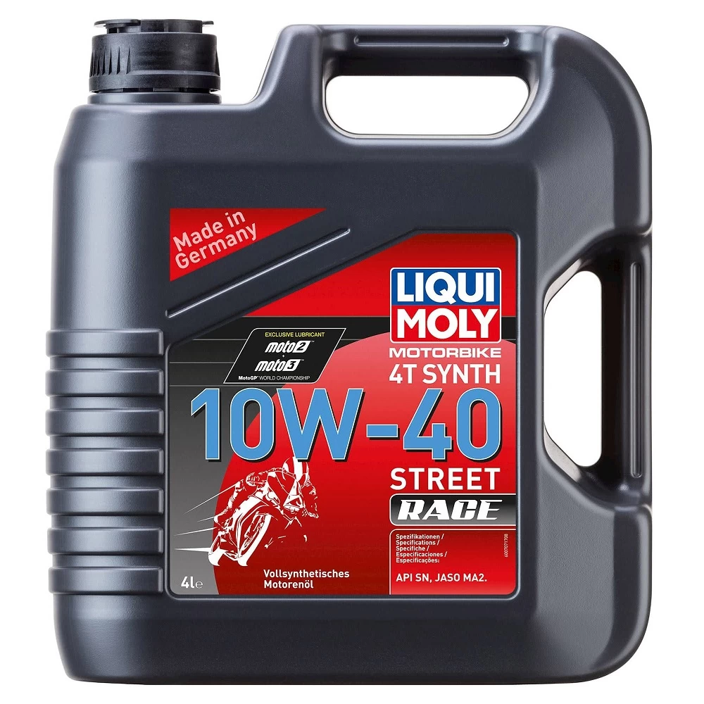 The Liqui Moly 4 Stroke Street 10W-40 Fully Synthetic Race Oil is a high-performance motor oil perfect for enthusiasts. Ensures maximum performance and outstanding engine protection under all operating conditions. Offers perfect lubrication, outstanding engine cleanliness, excellent friction and minimum wear. Delivers smooth engagement and disengagement as well as gear shifting, which significantly increases driving pleasure. Tested for use with catalytic converters and on racing machines.