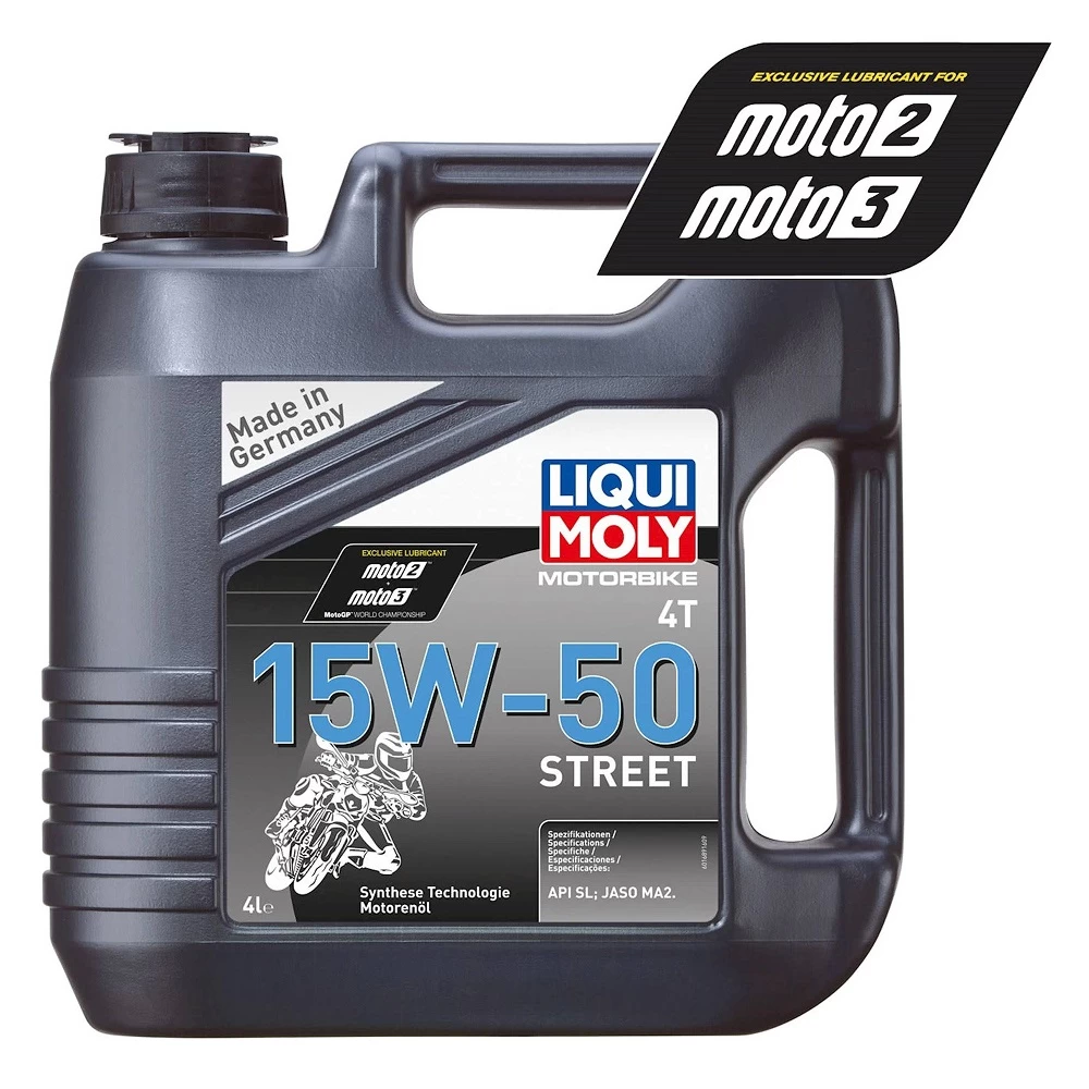 The Liqui Moly 4 Stroke Street 15W-50 Semi Synthetic Oil is a high-performance motor oil based on synthetic technology, perfect for enthusiasts. Ensures maximum performance and protection of the engine under all operating conditions. Optimum lubrication, outstanding engine cleanliness, excellent friction and minimum wear are just as much taken for granted as gentle clutch engagement, disengagement and gear shifting. Tested on engines with catalytic converters.
