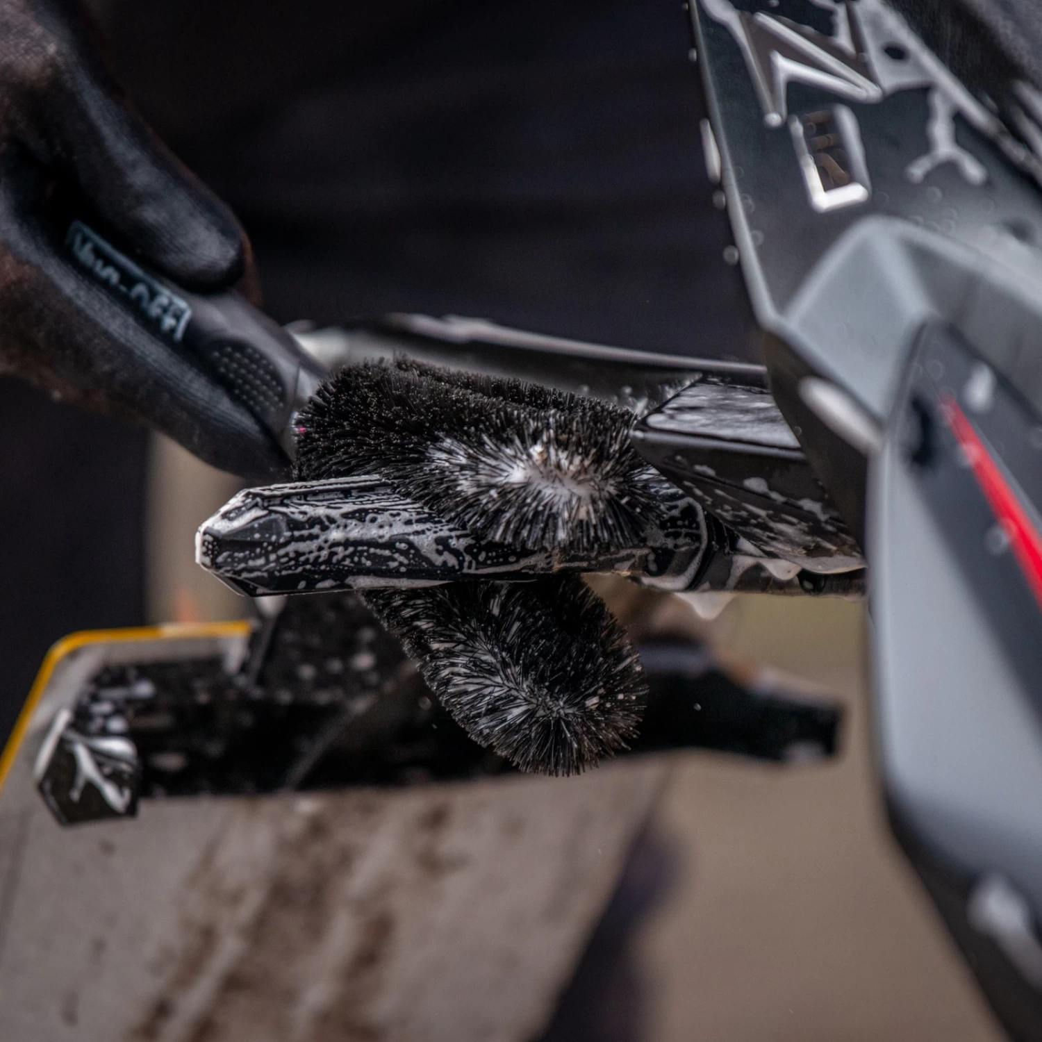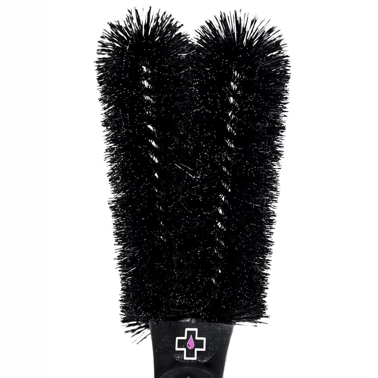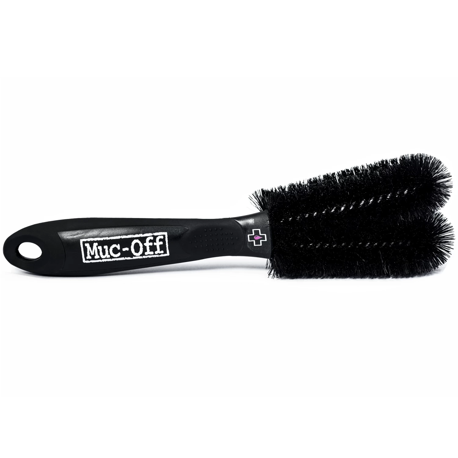 The Muc-Off 2 prong cleaning brush is ideal for reaching hard-to-shift dirt on spokes, discs, shocks, foot pegs and linkages. A new design features a tough impact resistant dual density handle for maximum grip in wet conditions and durable nylon bristles. The twin brush heads can be altered and re-positioned to reach the tightest of areas.