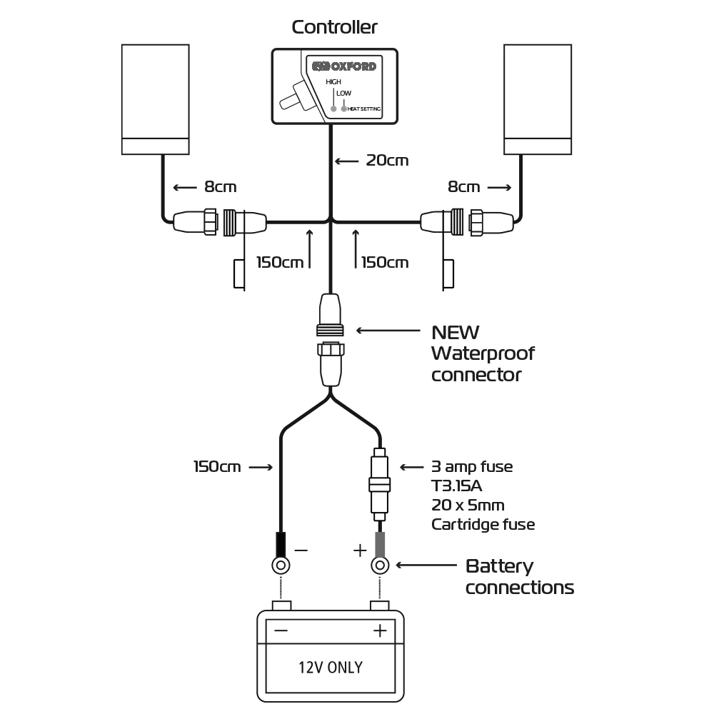 Oxford motorcycle hot grips were the original, and they’ve managed to improve upon perfection. The Advanced motorcycle hot grips wrap are the latest in the Oxford advanced range, and is the result of over 30 years research and development by British engineers and motorcyclists. Dramatically increase the enjoyment of your winter riding by supplying constant heat to your hands in the cold. Perfect for those who don’t want to replace their bike’s grips, as you can easily fit the Hot Grips wrap around your existing grips. The weatherproof heated motorbike over grips come with two heat settings and feature a new easy use controller unit with waterproof connectors.