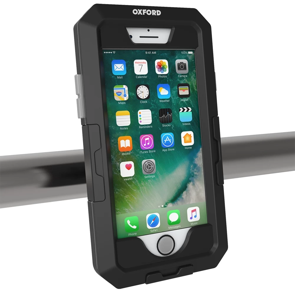 The Oxford Aqua Dryphone iPhone 7+ phone mount is ideal for riders looking for a dry and secure place to store their phone while riding. Both protective and waterproof, the Oxford Dryphone can be secured to your handlebars. You can use your phones navigation apps and Bluetooth functions while riding safely. Do not use mobile phone while bike is in motion.