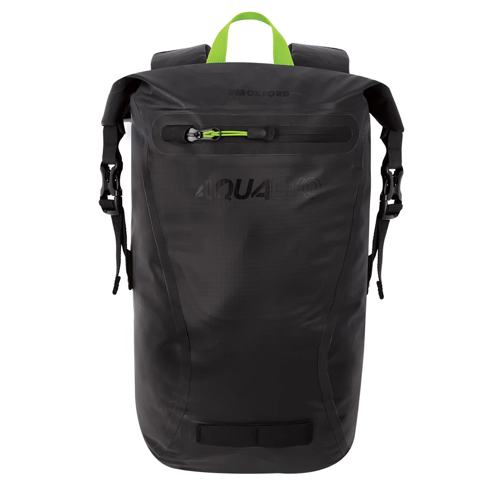 The Oxford Aqua Evo 12L waterproof motorcycle backpack is perfect for riders looking to take their luggage with them when they commute or go on a touring trip. A roll bag design, compression straps and an IPX-6 waterproof rating ensures your gear will arrive bone dry in even the most severe rainfall. Reflective detailing keeps you visible at night, a padded back delivers comfort even on longer journeys and a removable padded laptop sleeve is great for tablets for workers on the go.