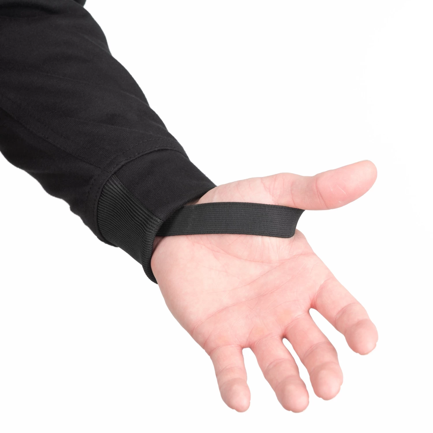 - Thumb holes to secure sleeves whilst riding and prevent wind chill up the arm.