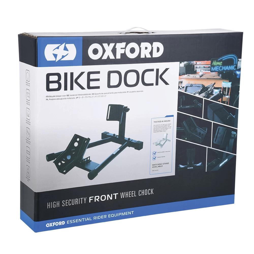 The Oxford Bike Dock is perfect for riders looking for a safe and secure place to store their bike at home or when transporting their pride and joy in the back of a vehicle. The motorcycle wheel chock has a heavy duty design which ensures that your bike will remain still and prevent your ride from rolling or tipping over. Can be left free standing, screwed into the floor or to a trailer.