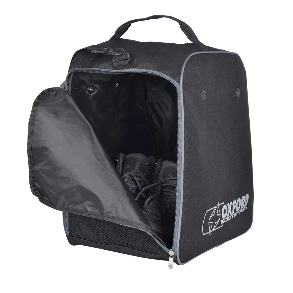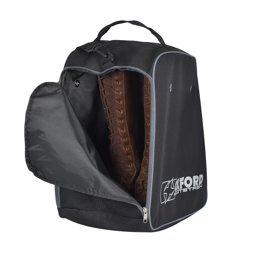 The Oxford Bootstash is ideal for riders looking to take a change of footwear with them while on their journeys. The bootstash offers a convenient and tidy method to store your boots whether you’re on your travels or looking for a neat way to put them away at home. The size of the bag ensures that a wide range of boots will fit, including adventure boots and cruiser boots. A large pocket on the front of the bag is great for storing socks, keys and other accessories.