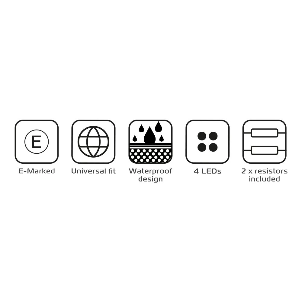 Replace your standard indicators with the Oxford Cell LED motorcycle indicators. Beautifully crafted and miniaturised high performance components. A battery of high intensity Light Emitting Diodes (LED) put basic, low wattage bulbs in the shade. As well as their bespoke design and enhanced performance, Oxford LED motorbike indicators boast a much longer life-span than the conventional bulb-lit indicators. Therefore you can spend more time enjoying your bike and less time maintaining it.