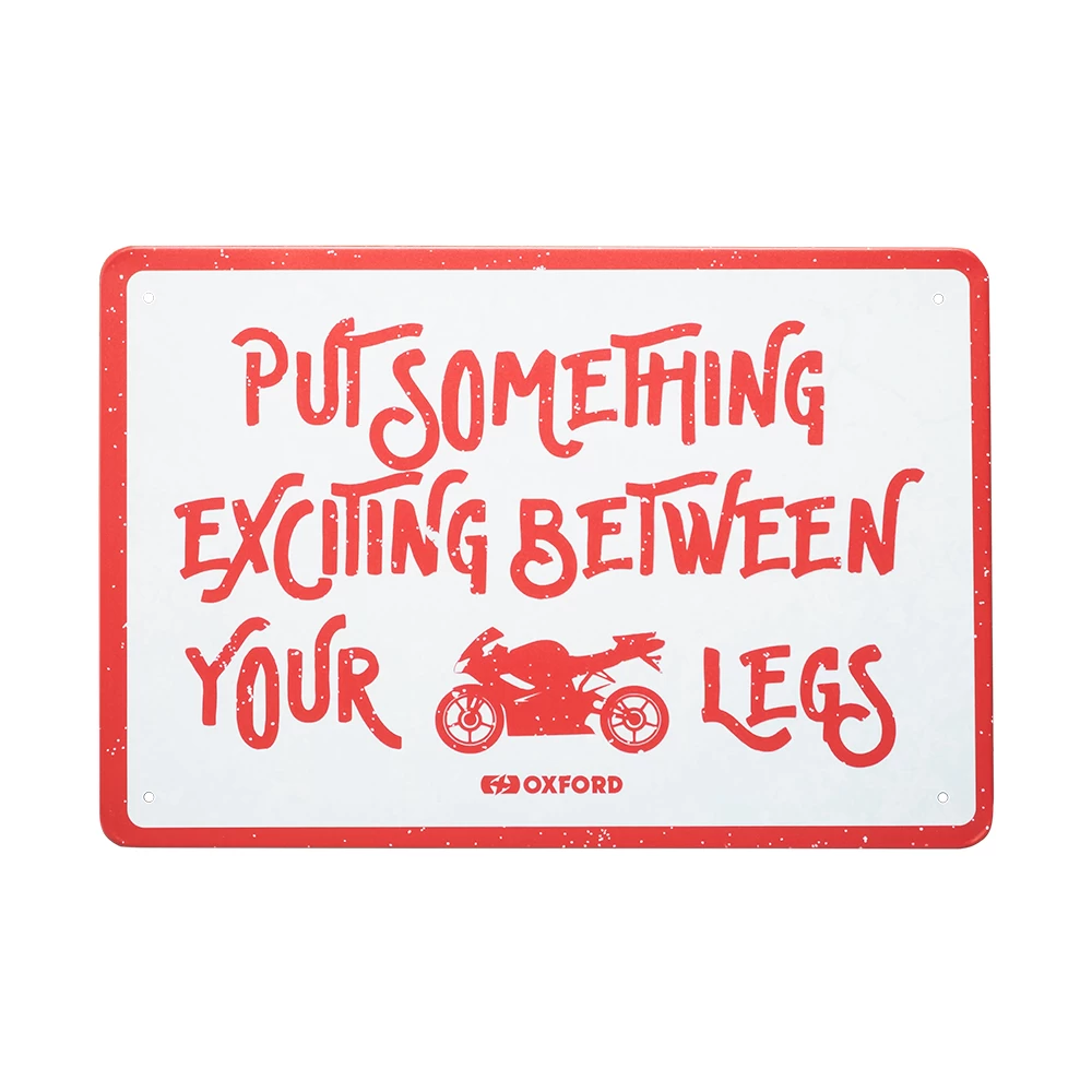 The Oxford Exciting motorcycle garage sign is perfect for riders looking to finish of their workspace, sheds and garages. Celebrate being a part of the greatest community on earth by displaying a metal motorcycle sign on your wall. Whether you commute to work, cross continents or tear up the race track there’s a sign that suits your riding style. With pre-drilled holes perfect for mounting, the metal motorbike sign is a superb gift for the biker who has it all.