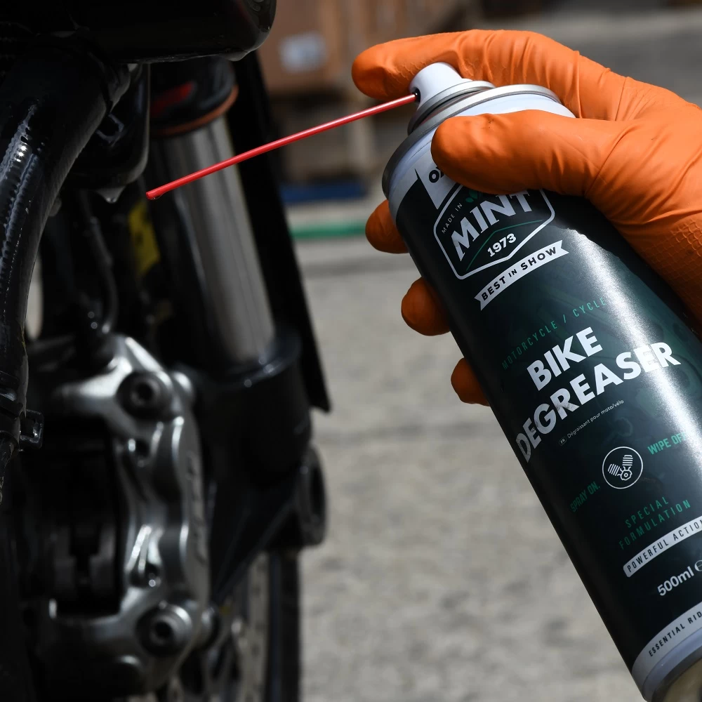 Your motorcycle engine overtime develops a large build-up of road grime, oil film and general dirt. The Oxford Mint bike degreaser is a robust cleaning formula, which is highly effective at dissolving and washing away grease and oily residues that have built up over long periods of time. Slow evaporating solvents remain on the cleaned surface for longer, in order to protect the surfaces and make cleaning the much easier the second time around. On application, the motorcycle degreaser is more effective if allowed to soak for a few minutes before being washed off and has an emulsifying formula to help this process.