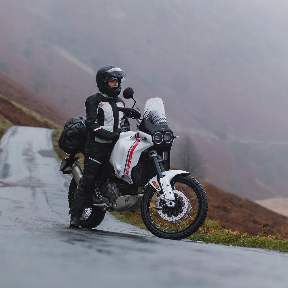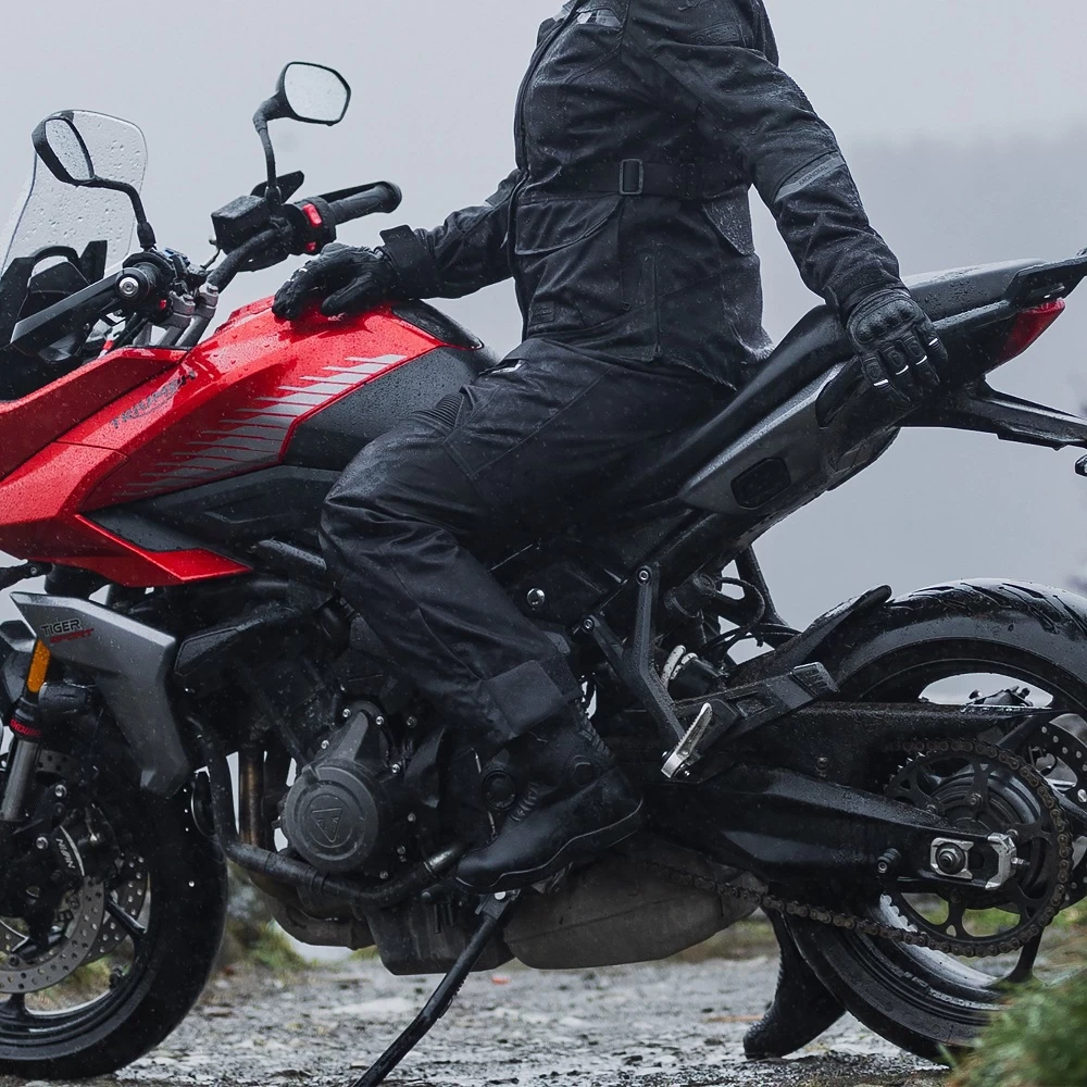 Large upper leg vents are now easily opened and fastened open with one hand, without even needing to look at them. In addition to the water-resistant zippers, clever fabric techniques create rain channels that further prevent rain ingress. Semi-auto lock zippers ensure the flap remains closed when not in use. The ladies waterproof touring trousers are available in a range of colours to match any riders gear, bike and personal taste!