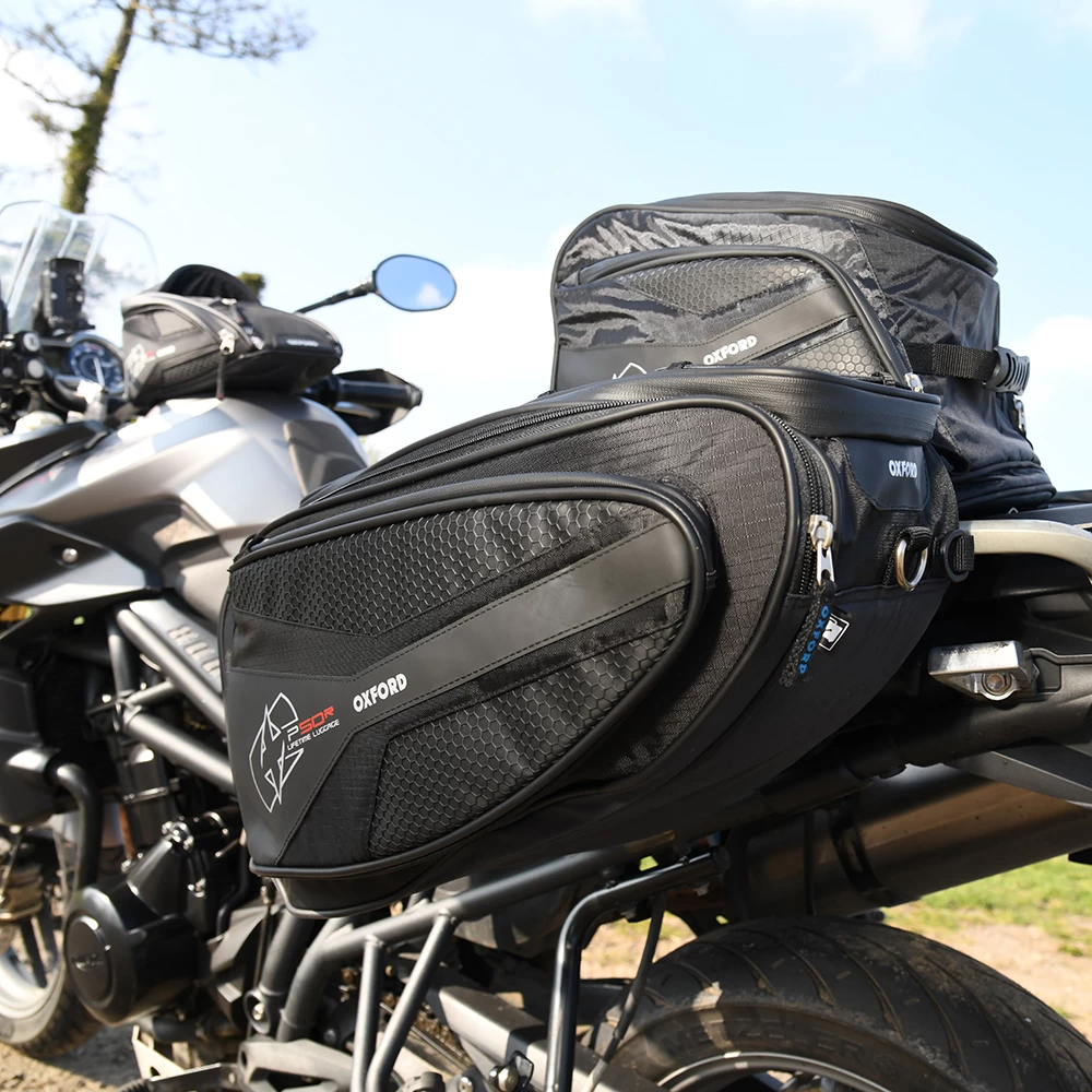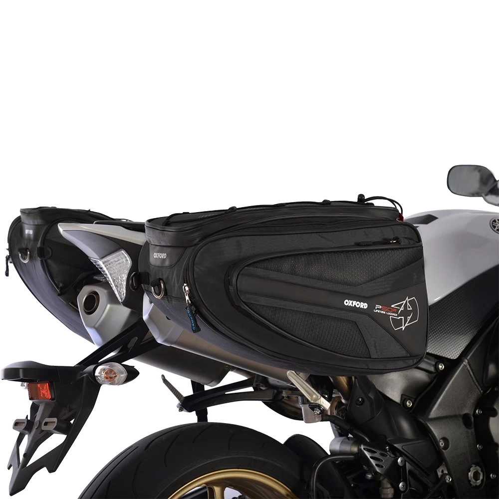 The Oxford P50R black motorcycle panniers are an extremely versatile pair of panniers that when fully expanded can hold a whopping 50 litres of storage! Ideal for naked bikes, tourers and sports tourers. If you need a lot of flexibility in with your luggage, the Oxford P50R panniers could be for you. All the equipment needed to attach the motorcycle panniers to your bike are provided.