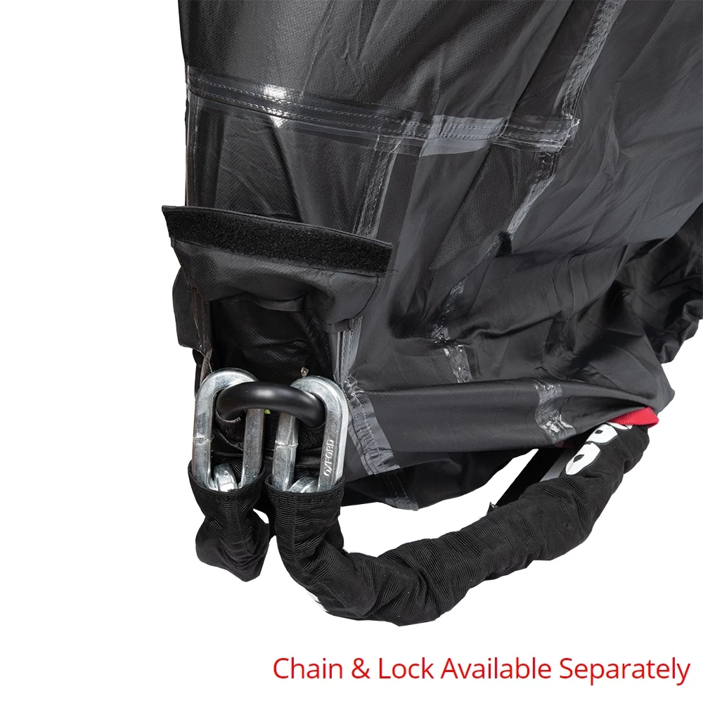 Police initiatives have also shown that bike covers can be a useful theft deterrent. This is especially true if you secure the belly strap in place and use the cover in conjunction with a security chain & lock threaded through the lock holes provided.