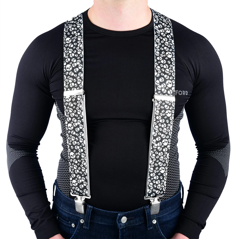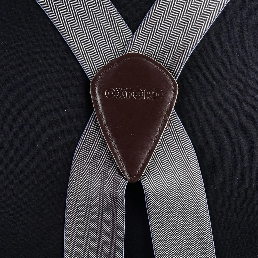 Fed up of your trousers falling down? Do belts aggravate you while riding? Then look no further than the Oxford Riggers motorcycle braces! A great help in keeping your trousers up while both on and off your bike. With a comfortable design, sturdy design and adjustable length, theyβre a perfect fit for anybody! Available in a range of colours and graphics to match any riders gear, bike and personal taste.