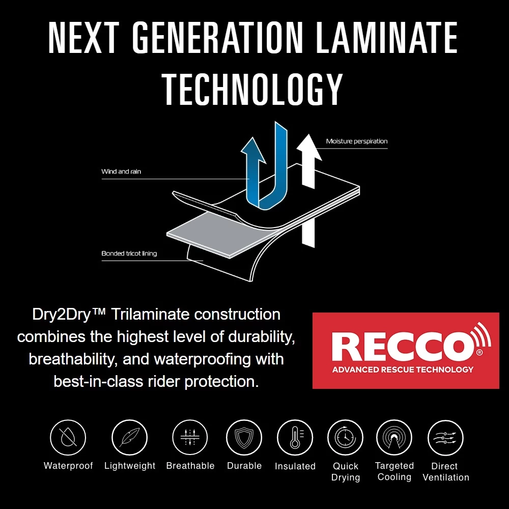 - Tri-Laminate stretch in the waist, rear of the knees and above the seat of the trousers.