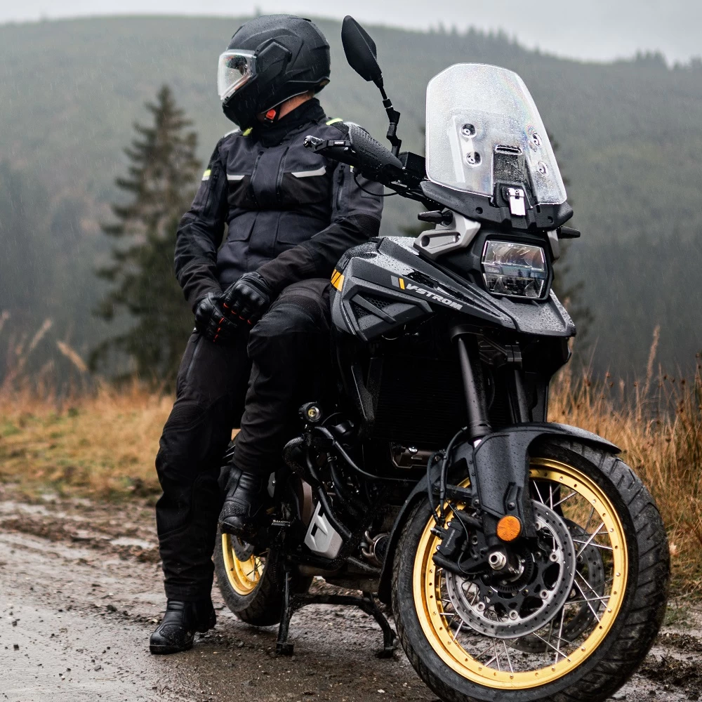 The Oxford Stormland motorcycle trousers have been designed for adventure riders who demand the very best in wet weather motorbike gear. The highly versatile Stormland motorbike pants are constructed with Tri-Laminate Dry2Dry™ technology. This offers unparalleled all-year performance due to its highly waterproof and breathable outer shell, downpour-beating features and plethora of vents. A fully removable WarmDry™ thermal layer features Polartec® Power Grid™ stretch in key areas, allowing the mid layer to move with you without sacrificing warmth.