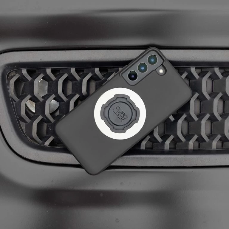 The Quad Lock Samsung Galaxy S22 Ultra motorcycle phone case feature Quad Lock’s secure locking mechanism compatible with all twist & lock mounts. The Galaxy cases are constructed with an impact resistant polycarbonate core edge to edge impact absorbing TPU cover, and protective lining. A mount is required in order to use your phone on your motorcycle or in your car (available separately).