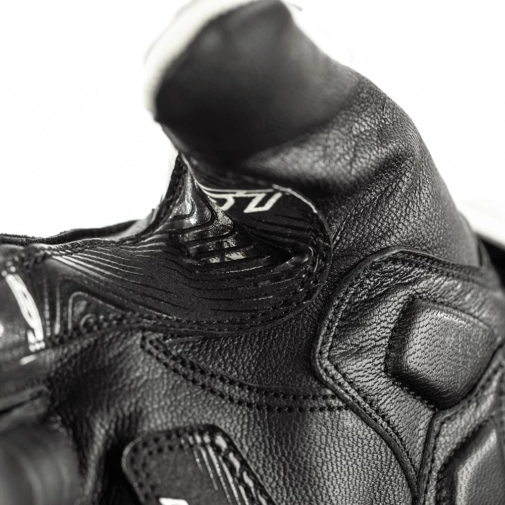 The RST Stunt III motorcycle gloves are a great choice for summer riders looking to remain cool, comfortable and protected on the road. The sports inspired leather RST motorbike gloves have been constructed with full grain leather, which continues to deliver ride after ride. Safety is assured through a Carbon knuckle protector, padded finger protection, a double layer leather palm and multiple reinforcements throughout.