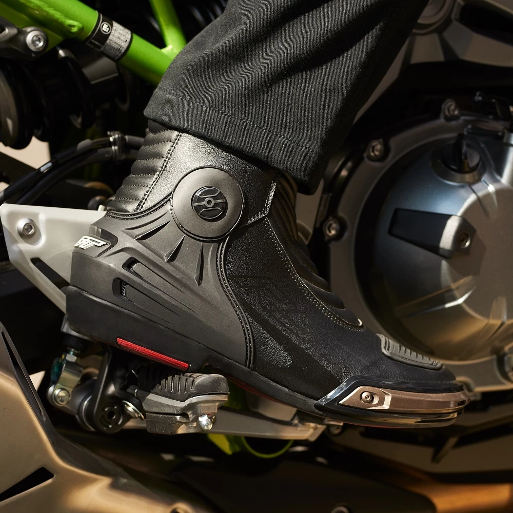 The RST Tractech Evo III short motorcycle boots are perfect for track day enthusiasts after a little freedom when they take to the road. Based on the every popular Tractech range, the short motorbike boots boast a low-cut design without compromising on the features found on the race boot. The ankle has a cut-out at the rear of the riding boots, which allows for free range of movement when changing gear and for improved movement when walking off of the bike.