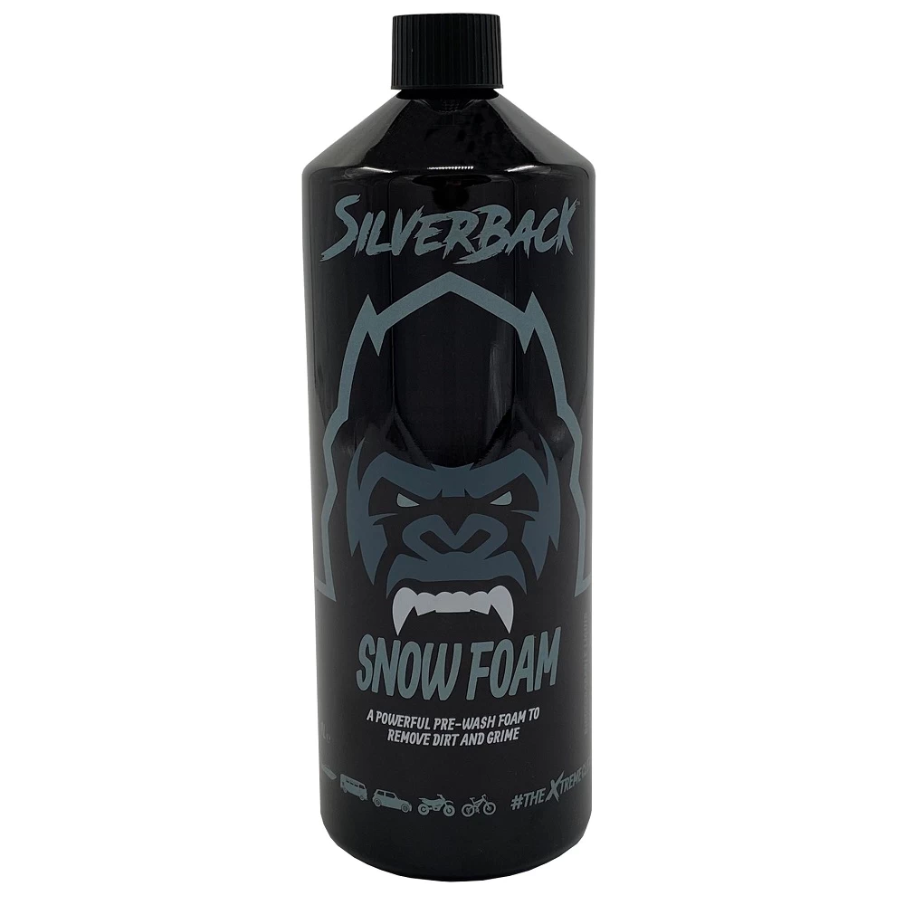 The Silverback motorcycle Snow Foam is a fantastic pre-wash for riders looking for the ultimate clean and shine. A premium pre-wash, best used prior to a motorbike shampoo. The motorcycle snow foam is ultra thick, which allows it to grab dirt, road film, sand, bugs and many more contaminants with minimal effort. The foam is a unique belnd of fully biodegradable materials. Ideal for use on motorcycle, bicycles, e-bikes and other vehicles. Proudly developed and manufactured in the UK.