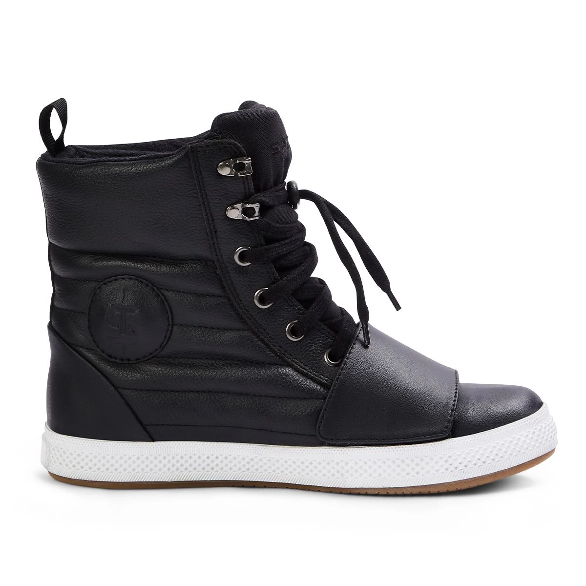- Supple leather upper with quilted channels.