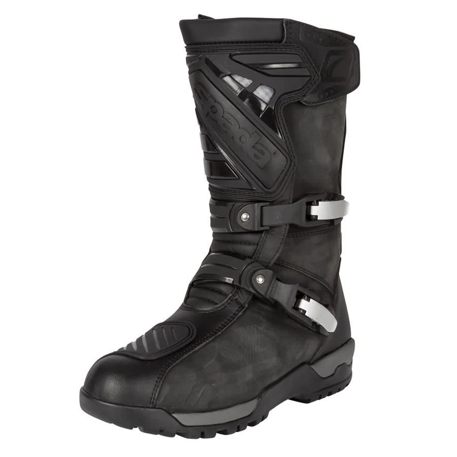 The Spada Raider enduro motorcycle boots are perfect for touring, adventure and everyday riders looking to stay dry and comfortable. The stunning long motorbike boots are constructed using PU coated leather as well as a waterproof Hipora lining which delivers excellence ride after ride. The adventure motorcycle waterproof boots are easily accessible and removable even after the hardest of journeys. Multiple reinforcements ensure that your feet also remain safe.
