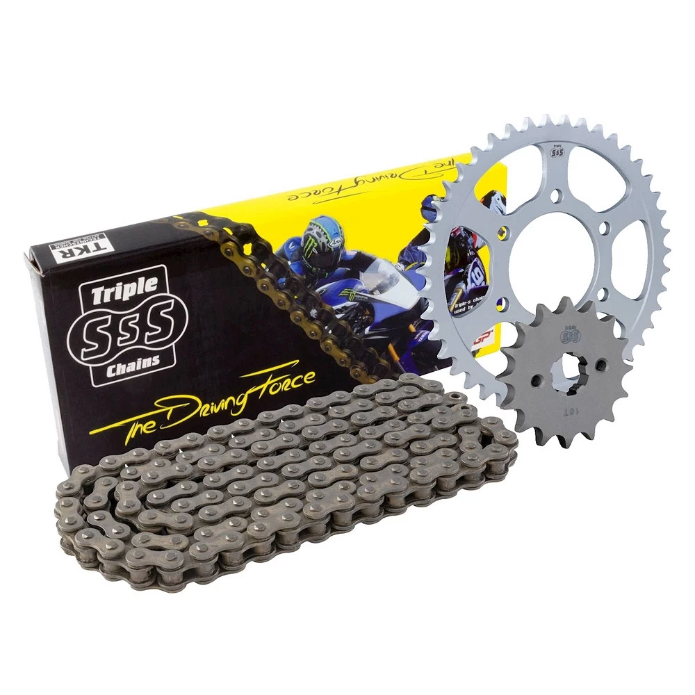 Looking to replace your old and tired motorcycle chain and sprockets? Look no further than the winning combination of the Triple-S chain and sprockets. The Triple-S Kawasaki KLE 500 motorbike chain and sprocket kit is compatible with the models listed below. Each kit contains one front and one rear sprocket, as well as the corresponding chain type. The fitment guide uses the manufacturers recommended chain grade, upgrade chain kits may also be available. Triple-S chain warranty covers either 12 months or 5000 miles, whichever comes first. Use on track days will invalidate any warranty.